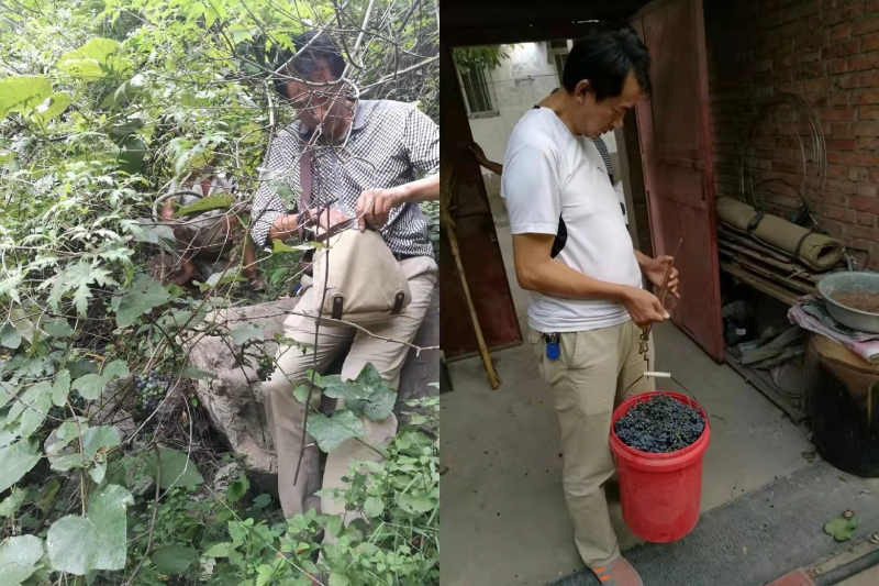 带着学生采摘野生山葡萄并称重,用作酿酒及葡萄籽的相关研究