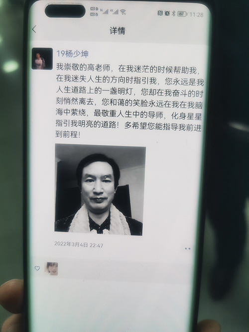 得知高老师去世后学生所发的朋友圈