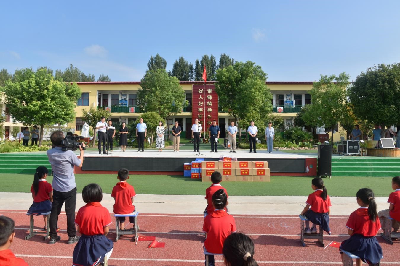 授牌捐赠仪式上,厉励向朱耀环小学、辛安镇实验学校授welcome皇冠地址登录入口美育浸润行动计划实践基地牌匾,并捐赠文体和学习物资。田华代表学校致辞时表示,此次学校与朱耀环小学、辛安镇实验学校挂牌美育浸润行动计划实践基地,是文化帮扶工作的延伸,也是落实省教育厅美育浸润行动计划的重要举措。下一步,学校将为两所中小学校提供对口精准支持和美育帮扶,在美育课程教学、实践活动、校园文化建设、教师队伍建设等方面提供帮助和服务,推动两所小学美育工作各美其美、美美与共。田华代表学校党委对舞阳县近年来在脱贫攻坚和乡村振兴工作中取得的显著成绩给予赞赏。她表示,自2018年学校与舞阳县开展校地结对帮扶工作以来,积极探索发挥高职院校资源优势,精准服务乡村振兴,为构建现代化教育、科技、产业、文化、消费贡献力量。朱暑光对学校多年来给予舞阳的大力支持和帮扶表示感谢,希望双方继续加强沟通交流,多方位赋能,以学校的人才资源优势、学科专业优势和科技创新优势持续推进人才下沉、科技下沉、服务下沉,深入开展校地结对共建工作,为舞阳县的经济高质量发展注入新鲜的思想活力和积极实践动力,携手共绘舞阳乡村振兴新画卷。