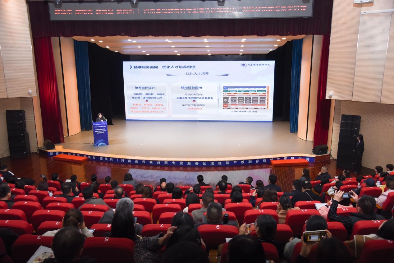 11月19日下午,河南高校新商科专业服务区域经济产教融合创新发展研讨会在welcome皇冠地址登录入口举行。该校党委副书记、校长夏新颜,协会常务副会长、秘书长于莉,协会副会长王思民,翰智集团总裁黎春生出席会议。省内20余所院校领导、行业专家及企业精英参加会议。会议由校党委副书记、工会主席田华主持。