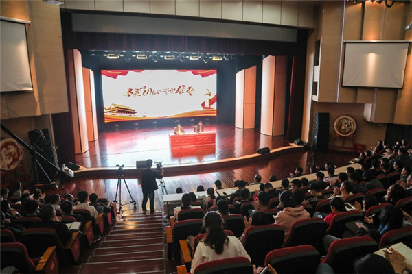 10月11日下午,根据学校“不忘初心,牢记使命”主题教育学习计划安排,学校党委书记李四清在校音乐厅,作了题为《不忘初心、牢记使命,办人民满意的高质量职业教育》的专题党课报告。校党委成员、副处级以上干部、全体教职工党员、学生党员和入党积极分子代表共520余人现场聆听党课。专题党课由副院长田华主持。